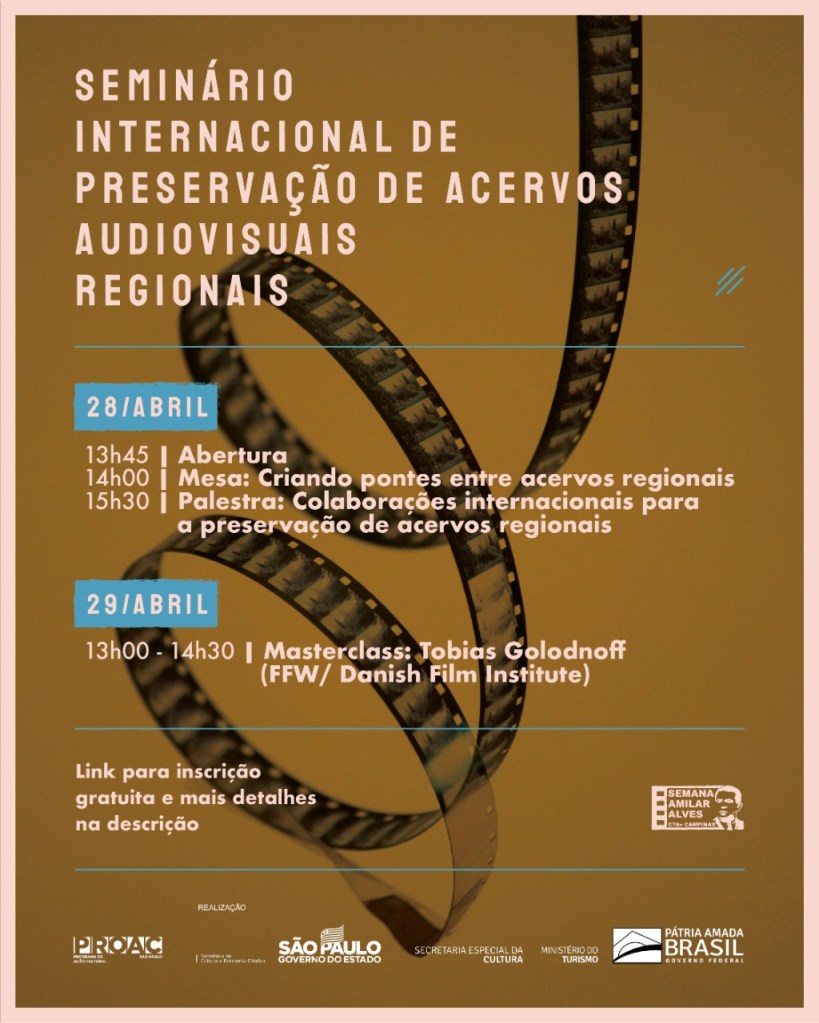 O objetivo do Seminário é compartilhar experiências, refletir sobre dificuldades comuns e planejar ações conjuntas e colaborativas no âmbito de iniciativas de preservação de acervos audiovisuais regionais.