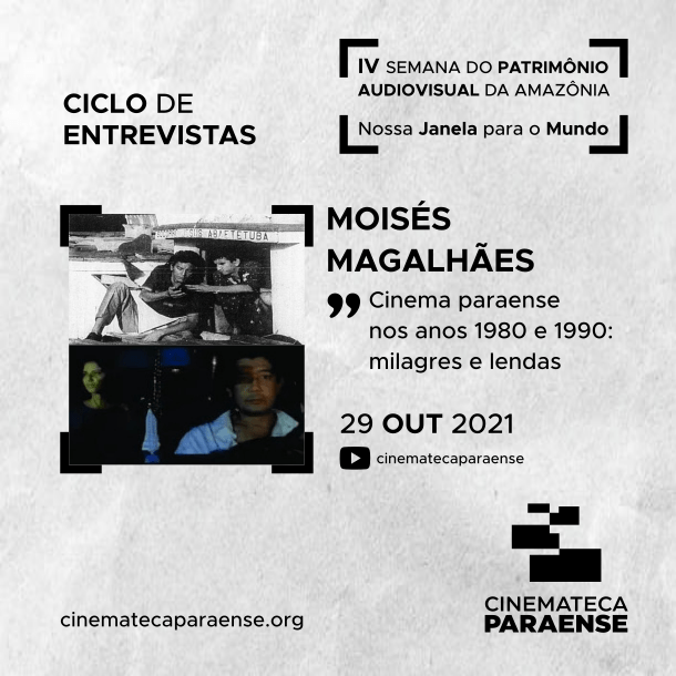 A Semana da do Patrimônio Audiovisual da Amazônia surgiu como iniciativa do projeto Cinemateca Paraense para difundir e discutir com a sociedade as práticas e experiências em preservação, conservação e comunicação em arquivos de filmes. Em sua quarta edição apresenta um ciclo de entrevistas mediadas pelo curador e idealizador do projeto, o professor e pesquisador Ramiro Quaresma. Serão cinco entrevistas com pesquisadores e realizadores que contribuíram para o reconhecimento da importância do cinema e do audiovisual na construção de um patrimônio de imagens e sons no Pará e na Amazônia, montando uma linha do tempo do cinema e audiovisual no estado do Pará. Entre os dias 25 e 29 de Outubro de 2021 serão publicadas no site (cinematecaparaense.org) e nas redes sociais da Cinemateca Paraense entrevistas com os pesquisadores Pere Petit, Eva Carneiro e Advaldo Castro e com os realizadores Chico Carneiro e Moisés Magalhães.