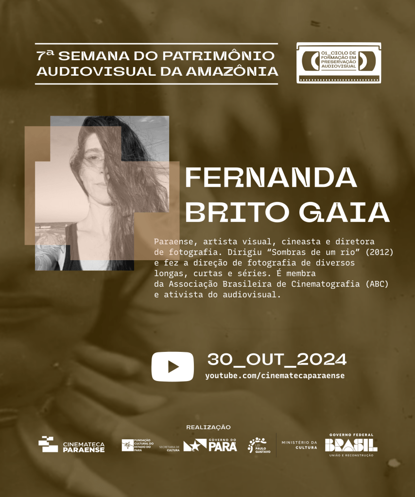 Fernanda Brito Gaia é paraense, cineasta, artista visual e diretora de fotografia, com mais de 20 anos de carreira e já participou de dezenas de obras de reconhecidos cineastas e produtores nacionais em diversas funções, em longas e curtas-metragem. Dirigiu “Sombras de um rio” (2012), fundamental registro dos impactos da hidrelétrica de Belo Monte nas tribos e ribeirinhos na região do Xingu, além de episódios de séries, videoarte e videoclipes. Membro da Associação Brasileira de Cinematografia (ABC) divide seu tempo entre o ofício no audiovisual e o ativismo, participando de projetos de formação e inclusão no audiovisual. Fez a direção de fotografia do filme de Zienhe Castro “O Homem do Central Hotel” (2019) e série paraense de dez episódios “Lar doce lar” (2024).