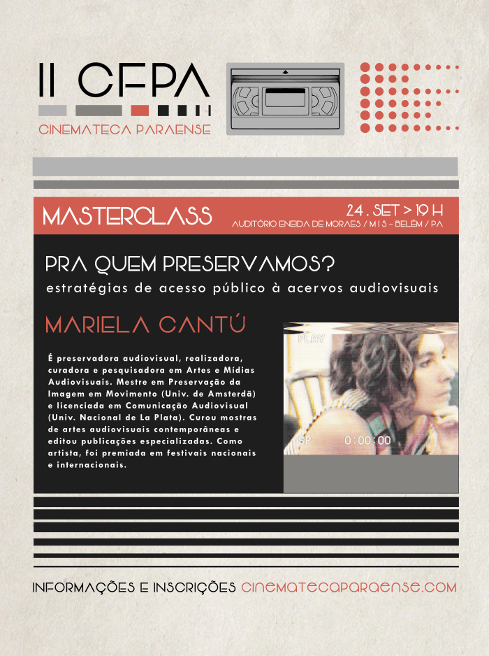 - PRA QUEM PRESERVAMOS? estratégias de acesso público à acervos audiovisuais, com Mariela Cantú (24.SET > 19H – Auditório Eneida de Moraes / MIS-PA)