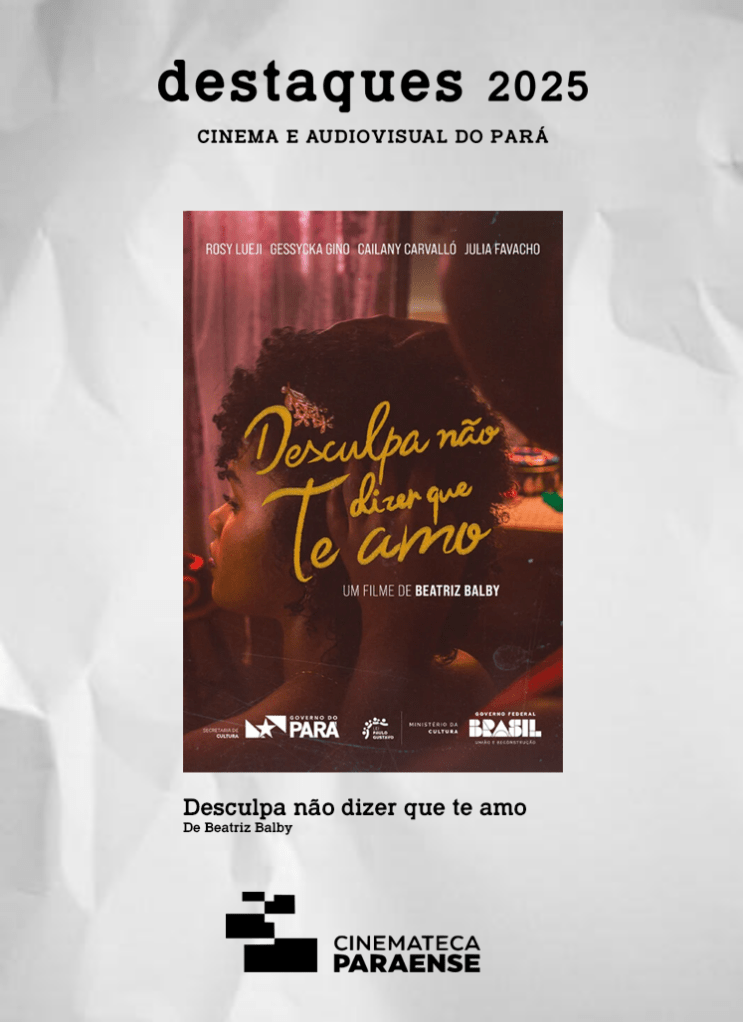 DESCULPA não dizer que te amo. Direção e Roteiro: Beatriz Balby; Produção Executiva: Denise Espíndola; Direção de Fotografia: JV Garcia; Edição e Montagem: Kian Zwicker, JV Garcia, Daniel Magno; Direção de Produção: Mariana Corrêa; Direção de Arte: Naya; Assistente de Direção: Ádria Sofia, Gabriel Jacob, Kian Zwicker; Direção de Som: Lyandra Faria; Elenco: Rosy Lueji, Gessycka Gino, Cailany Carvalló, Julia Favacho, Victor Menezes. Belém, 2025.