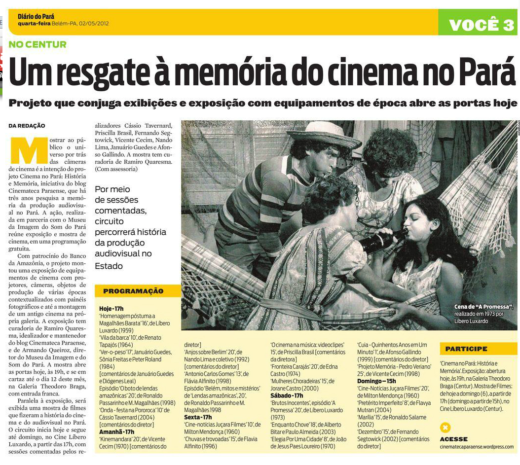 O cinema paraense passa por um bom momento em sua criação com um grande número de obras sendo produzidas e, principalmente, acaba de ganhar um curso de graduação na área do cinema. Portanto momento ideal para voltar os olhas para o nosso passado audiovisual, ver e discutir os filmes que fazem parte na nossa história.